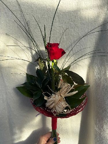 1 ROSA CON SOTTOMAZZO E FIOCCO IN RAFIA