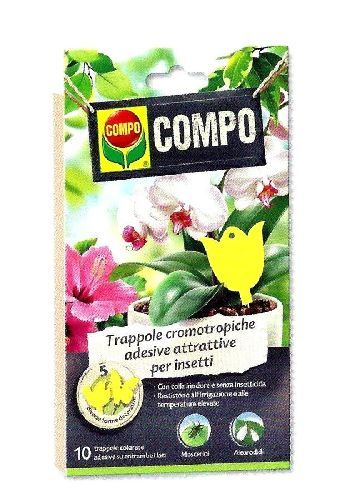 Le trappole cromotropiche adesive e attrattive per insetti permettono di monitorare alcuni insetti volanti (mosche bianche, zanzare, afidi, tripidi, moscerini). Le trappole hanno delle deliziose forme decorative e possono essere facilmente installate in vasi di fiori con gli appositi supporti in legno inclusi nella confezione. Il loro utilizzo è consigliato in casa e in balcone.