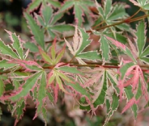Piccolo albero dal portamento cespuglioso ma ordinato, che raggiunge una altezza massima di 3-6 m Questa latifoglia spogliante dal lento accrescimento presenta una chioma caratteristica ad ombrello con ramificazioni quasi orizzontali. Fusto eretto e cespitoso, ramificato fin dalla base, con corteccia grigiastra. Le foglie caduche sono semplici a 5/7 lobi acuti, larghe 5-11 cm, a margine seghettato. Esse sono di colore verde chiaro scriziato di bianco e rosa in primavera ed in autunno diventano rosse. I fiori in infiorescenze (corimbi) insignificanti di color rossastro che appaiono nella tarda primavera (maggio-giugno). Frutti caratteristici sono le disamare con due ali ad angolo ottuso, rossicce a fine estate.