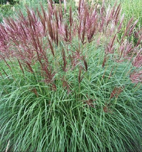La pianta di Miscanthus sinensis è una graminacea decidua dal portamento compatto, che forma cuscini erbosi di foglie filiformi, con spighe a piuma rossa. Coltivata per il bel fogliame, il portamento e le leggere infiorescenze, è ideale nelle bordure erbacee e miste, per roccia o per contenitori.