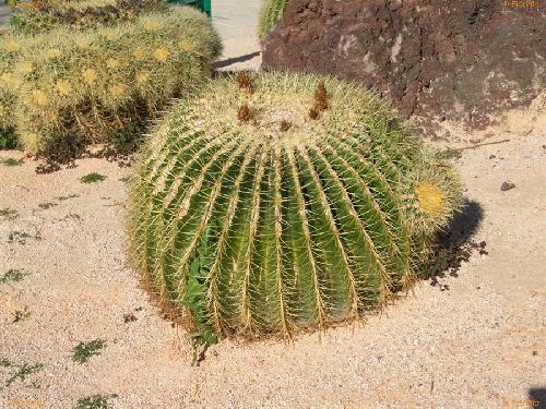 L’ Echinocactus grusonii è la pianta grassa più famosa e rinomata, con gli anni ha acquisito il soprannome di “cuscino della suocera” forse anche grazie al suo aspetto tondeggiante e molto spinoso. E’ un cactus caratterizzato da una fitta spinazione giallo intensa ed i suoi fusti sono per lo più sferici di colore verde solcati da ampie costolature molto marcate e definite. La fioritura giallo ocra sboccia in primavera creando dei veri mazzi floreali in cima a ciascuna pianta, fuoriuscendo dalla peluria apicale e sono di forma tubolare. Grazie alla sua facile coltivazione e robustezza ha trovato largo uso sia come regalo essendo simbolo di resistenza e resilienza sia nei giardini o spazi esterni a clima temperato e mite