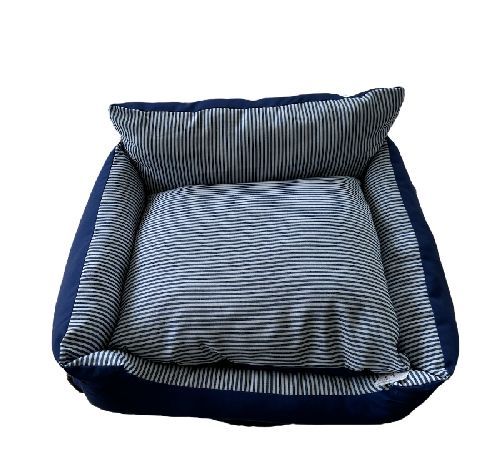 Cuccia per animali domestici, in tessuto BLU e con fantasia a righe. 50 x 40.