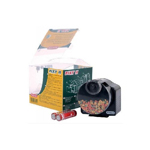 Zolux Mangiatoia automatica per acquari Pixy II è un distributore automatico di fiocchi o granulati per pesci d’acquario.La mangiatoia Pixy II è ideale da usare nei week-end fuori casa o durante le vacanze per alimentare in automatico pesci e tartarughe. Si può regolare la quantità di cibo da somministrare ad ogni pasto e scegliere tra 1 o 2 somministrazioni giornaliere.La mangiatoia funziona sia con mangimi in scaglie che in granuli.La mangiatoia è dotata di orologio al quarzo funzionante a pile (INCLUSE NELLA CONFEZIONE) per funzionare anche in caso di blackout.Dimensioni 110x115x90 mm