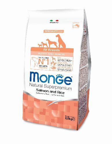 Le crocchette Monge Natural Superpremium Speciality Line Adult con Salmone e Riso sono un alimento completo e bilanciato per cuccioli da 2 a 12 mesi di tutte le razze che necessitano di alimenti ad alta digeribilità e che aiutino a prevenire le intolleranze alimentari.