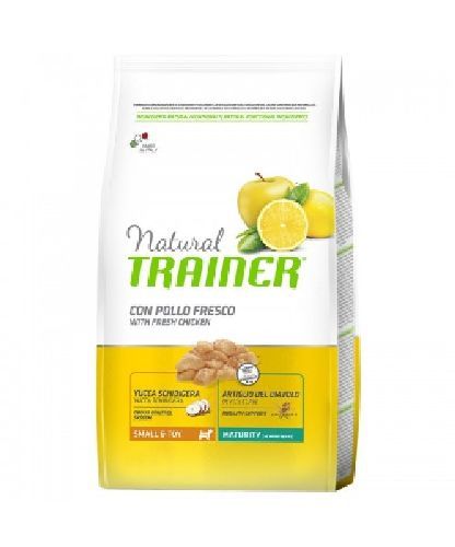 TRAINER NATURAL SMALL&TOY (< 10 Kg) MAUTURITY CON POLLO FRESCO è un alimento completo per cani maturi (> 8 anni) di piccola e piccolissima taglia.