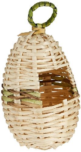 Nido per esotici in vimini chiuso, con anello in vimini per appenderlo.